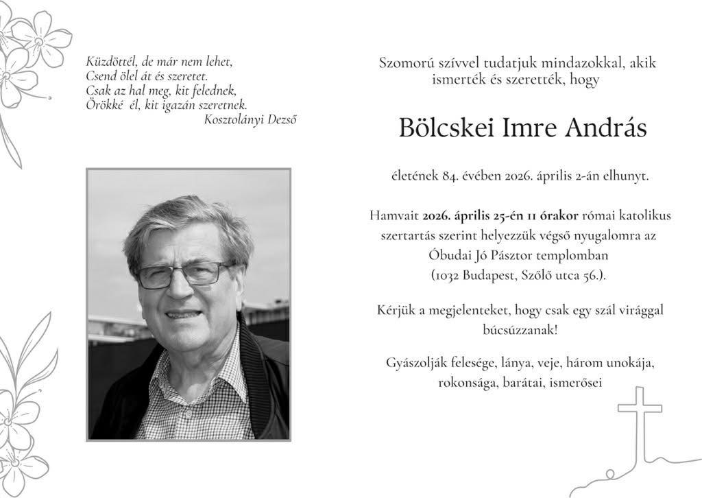 Most, ebben a szomorú pillanatban már csak az maradt, hogy azt kívánjuk, ennyi emelt fővel elvégzett feladat után nyugodj békében, Imre, legyen neked könnyű a föld!