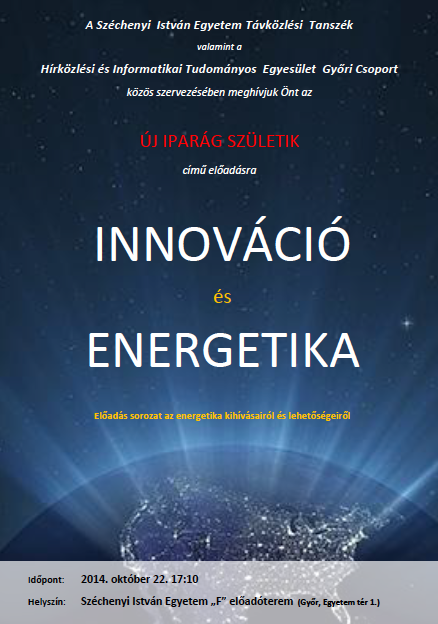 Az INNOVÁCIÓ és ENERGETIKA című előadás sorozat rövid betekintést nyújt az átalakuló világunkban végbemenő legfontosabb trendekre, a folyamatosan növekvő energia felhasználás által keltett műszaki, gazdasági és társadalmi kihívásokra. Bemutatjuk, hogy ezen globális kérdésekre az energetika és infókommunikáció együttesen milyen válaszokat tud adni.