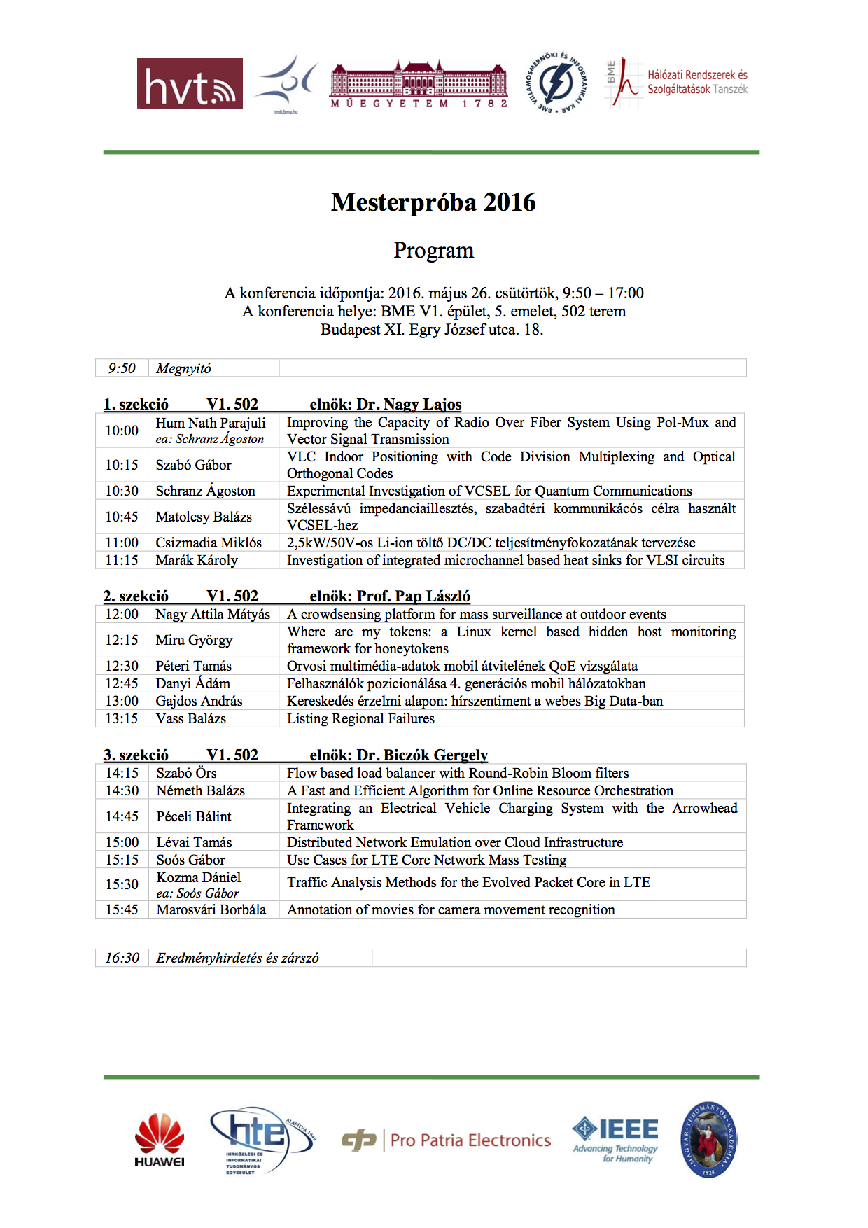 Mesterpróba 2016 - hallgatói tudományos konferenciára.