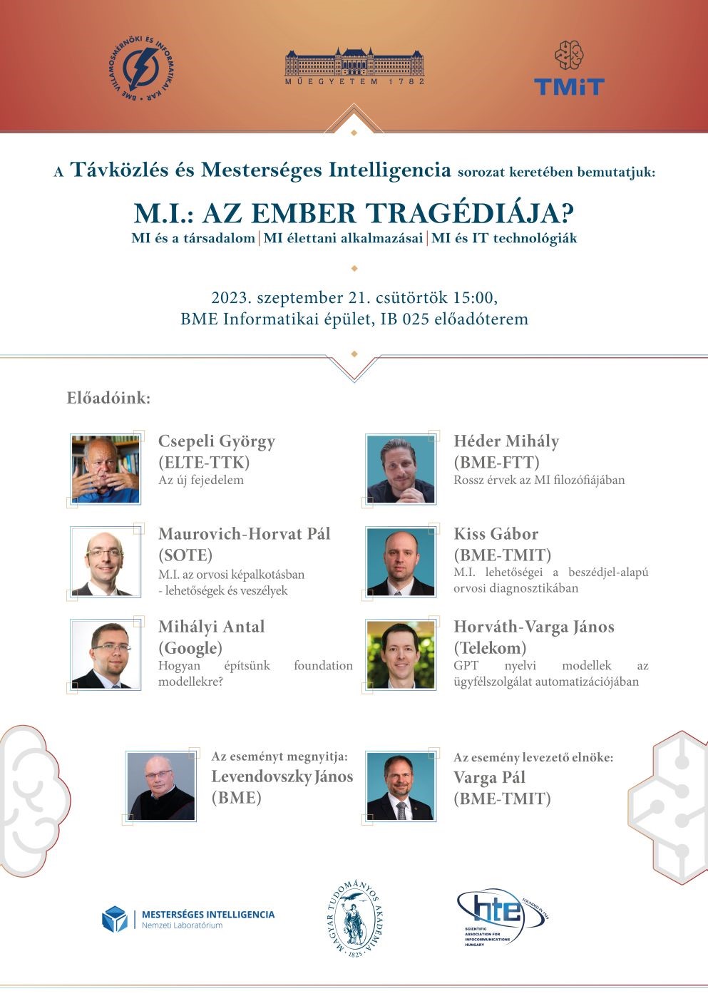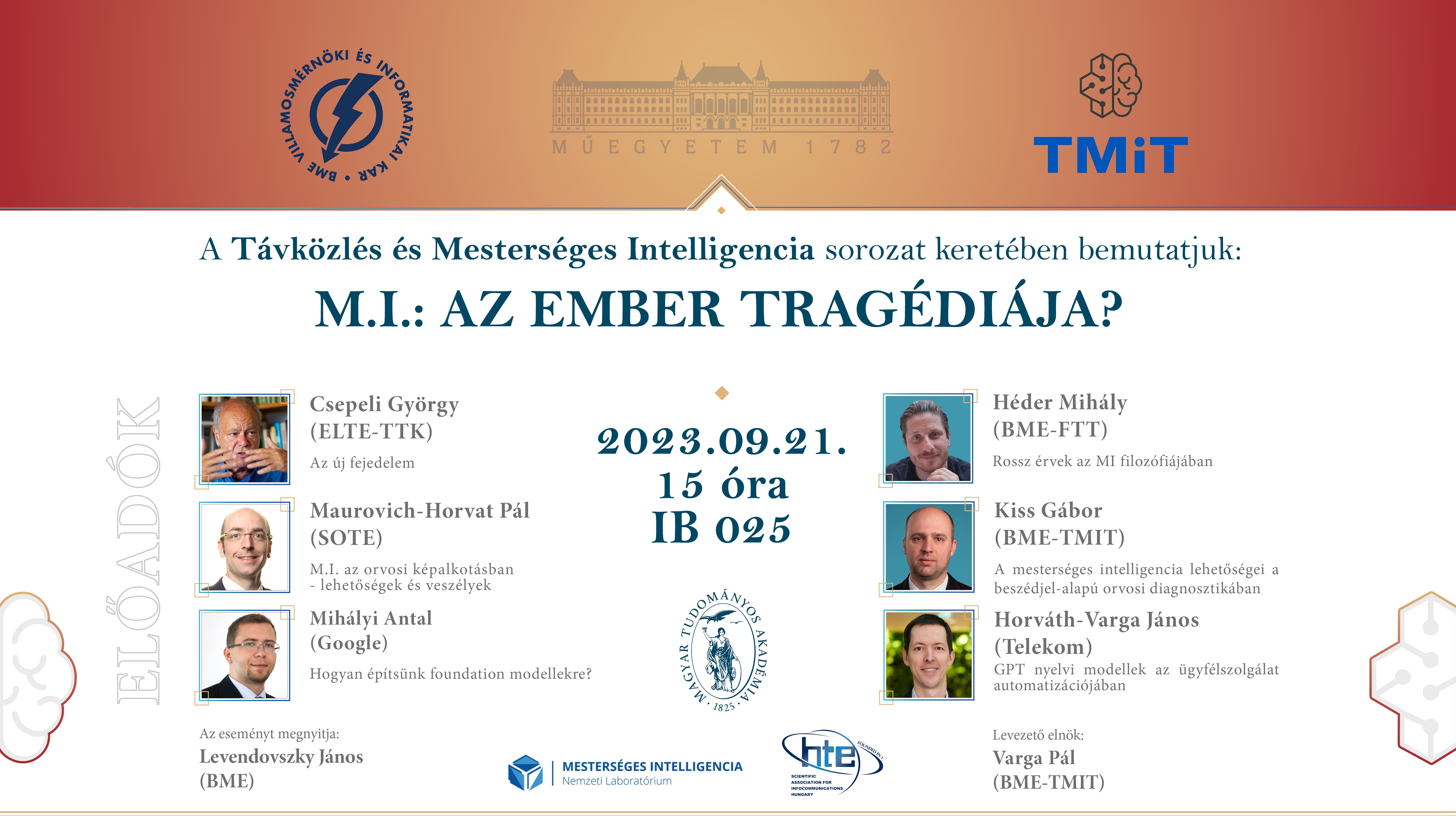 BME Távközlési és Médiainformatikai Tanszékének nevében a "Távközlés és Mesterséges Intelligencia" sorozat részeként tisztelettel meghívunk minden kedves érdeklődőt a – a HTE és azon belül a Mesterséges Intelligencia Szakosztály társszervezésében – megrendezésre kerülő