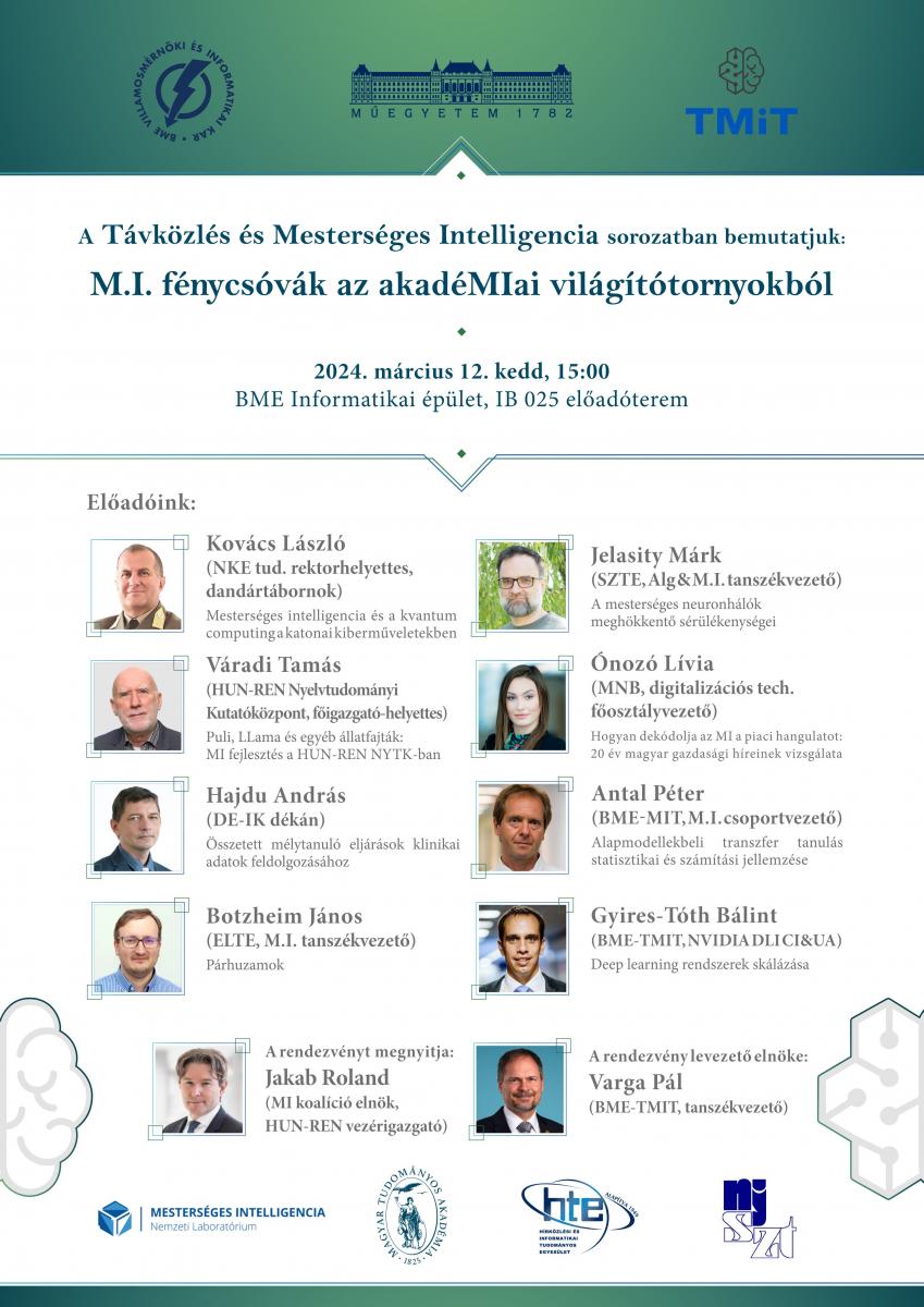 További információ és regisztráció: M.I. fénycsóvák az akadéMIai világítótornyokból - Távközlés és Mesterséges Intelligencia | Távközlési és Médiainformatikai Tanszék (bme.hu)