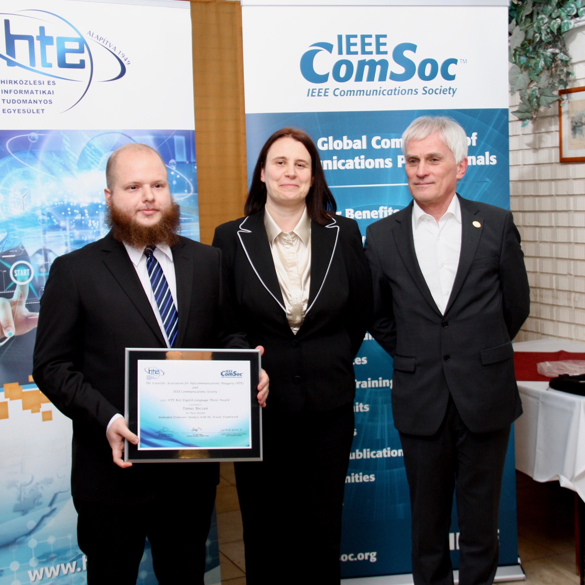 | | A 2017. évi HTE - IEEE ComSoc különdíjas 2017 HTE Best English-Language Thesis Award Boczán Tamás János: Embedded firmware analysis with the Avatar framework konzulens: Dr. Buttyán Levente (BME-HIT) |  Boczán Tamás János |