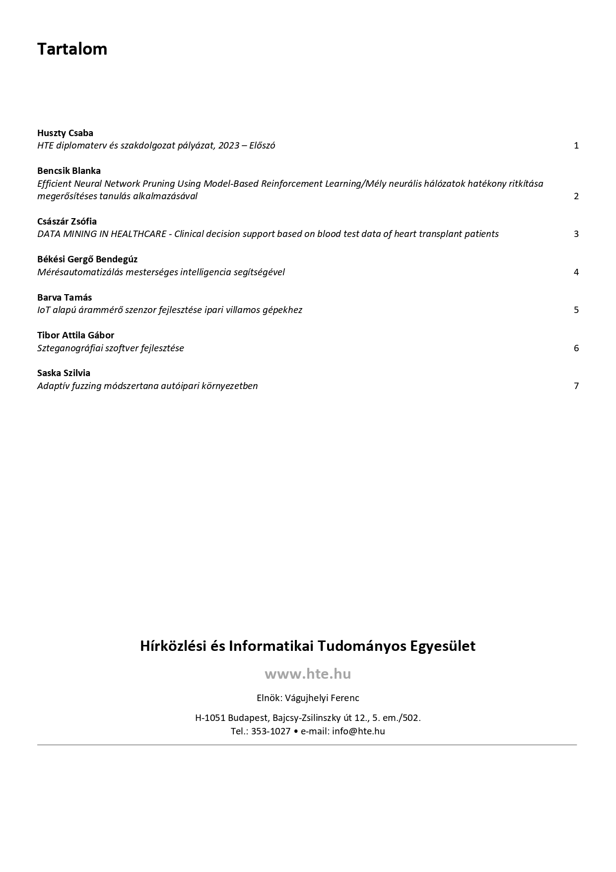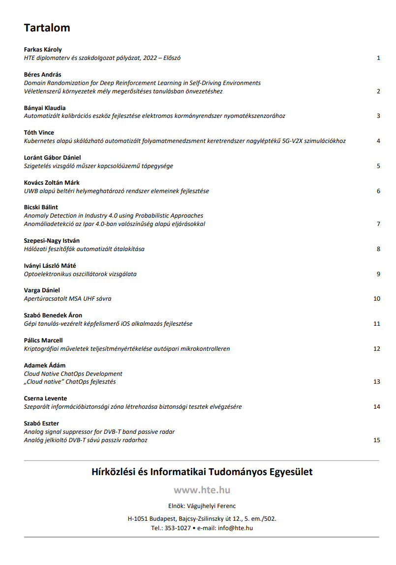 | | - Domián Bálint Gyula: Önvezető járművek kameraadatainak időbeli vizsgálata rekurrens neurális hálózatokkal és egylépéses képfelismerővel (BME – TMIT)