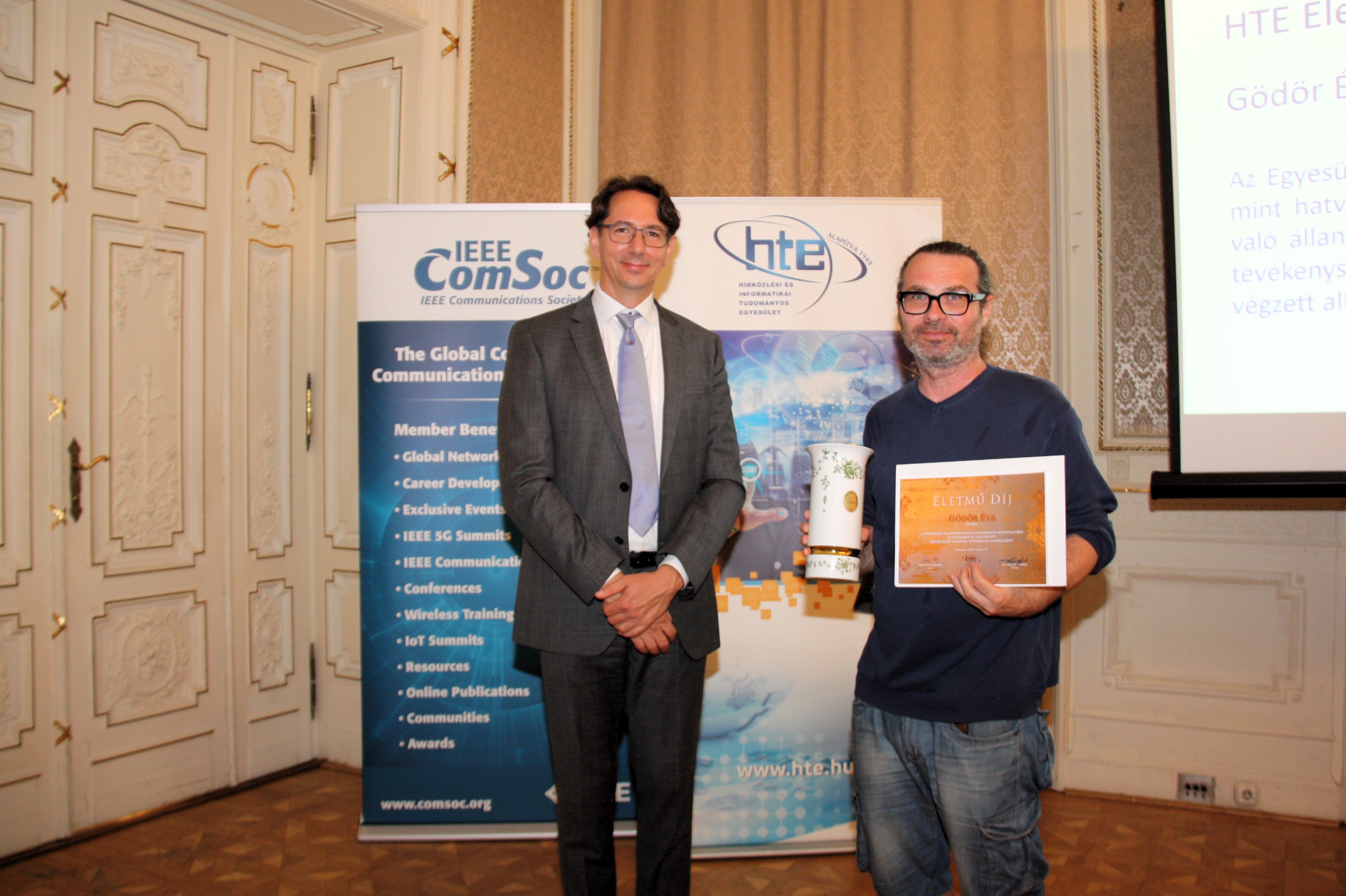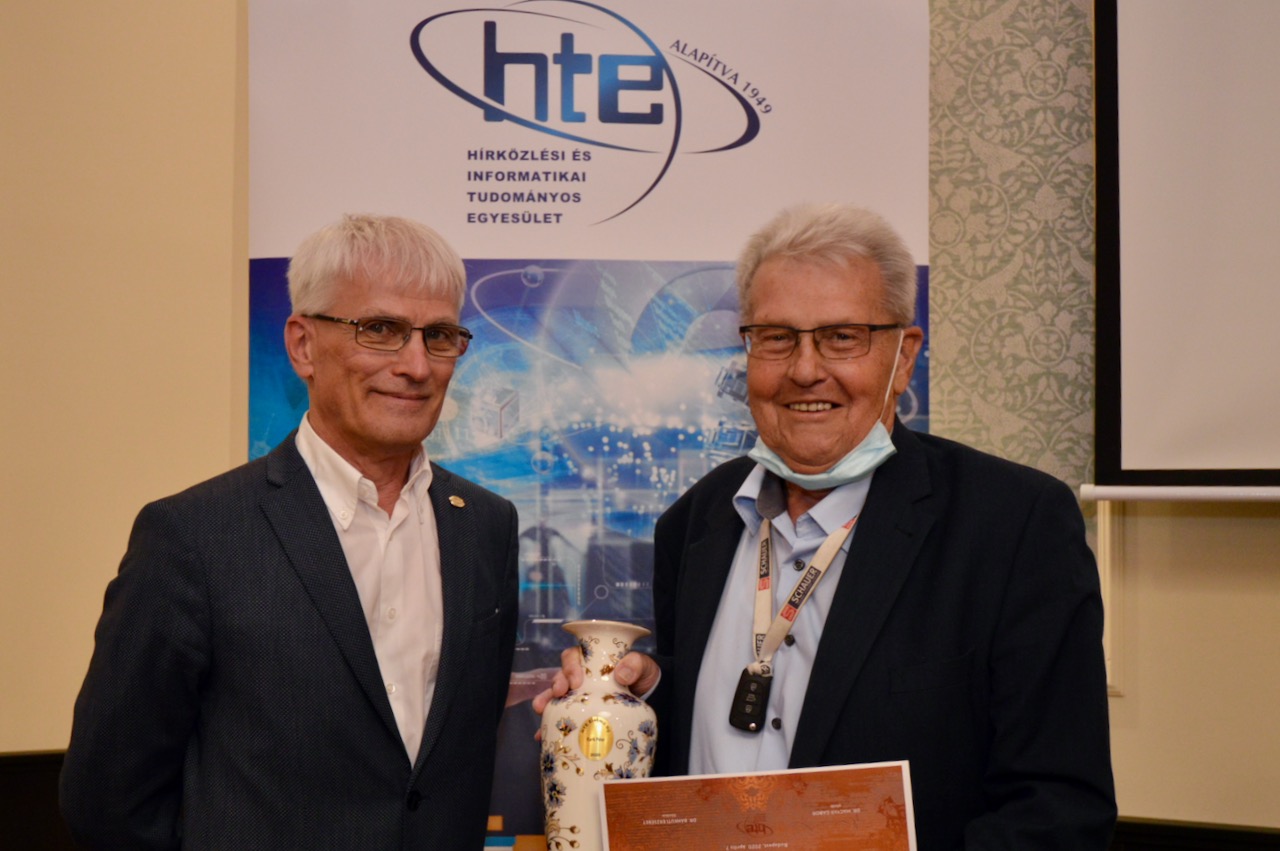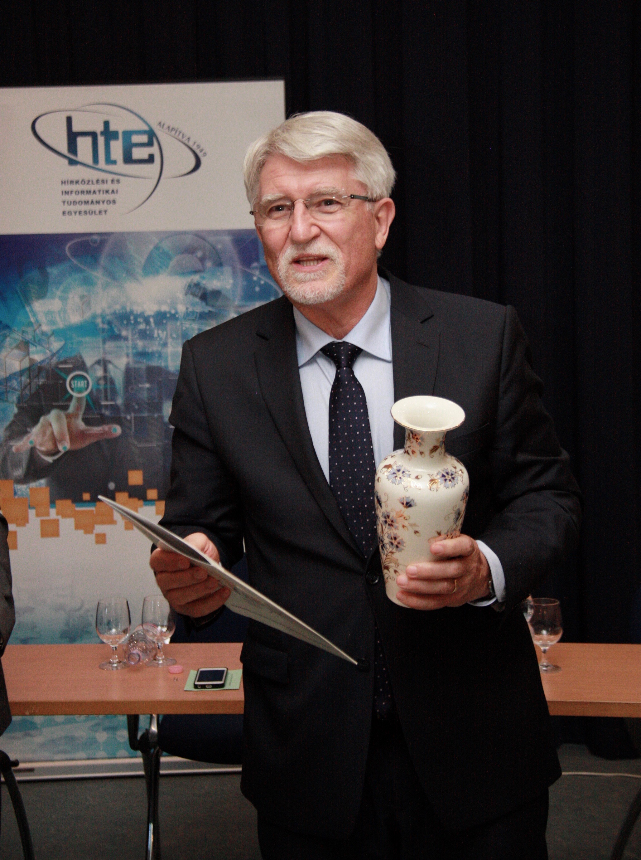 | Jereb László | Az egyesület a HTE Életmű díjjal Jereb László szerteágazó oktatási tevékenységét, kutatói munkáját, a fejlesztési és ipari projektekben elért eredményeit, valamint a TMMB-ben, IHSZB-ben és a HTE Infokommunikációs Szakértő Bizottságában végzett elnöki tevékenységét kívánja elismerni. | ![]() |