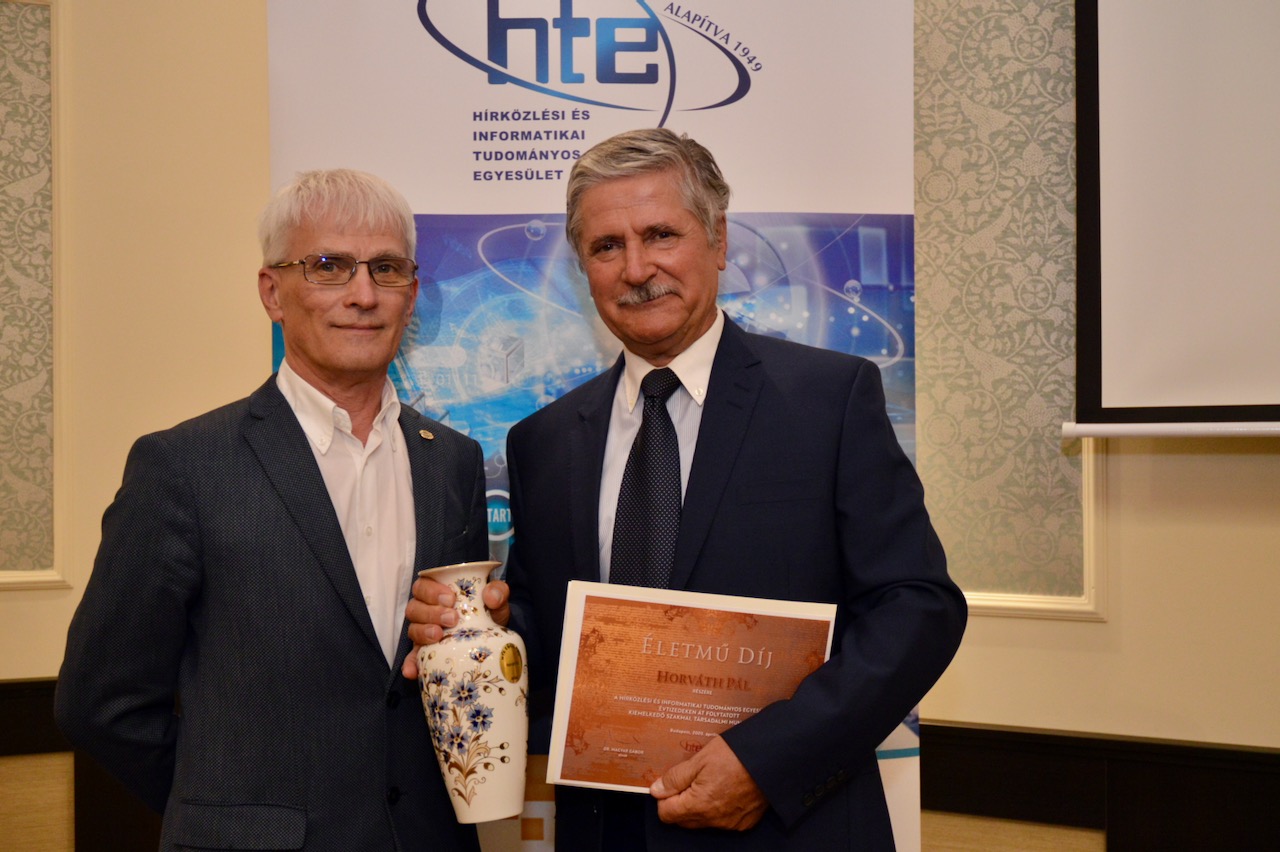 | Horváth Pál | Az Egyesület a HTE Életmű díjjal Horváth Pál hazai távközlésben elért érdemeit, a korábbi korszerűtlen hálózat gyors digitalizálását és fejlesztési eredményeit, valamint a HTE-ben végzett kitartó tevékenységét és ha kell, kritikus, de mégis segítő jellegű folyamatos támogatását kívánja elismerni. | ![]() |