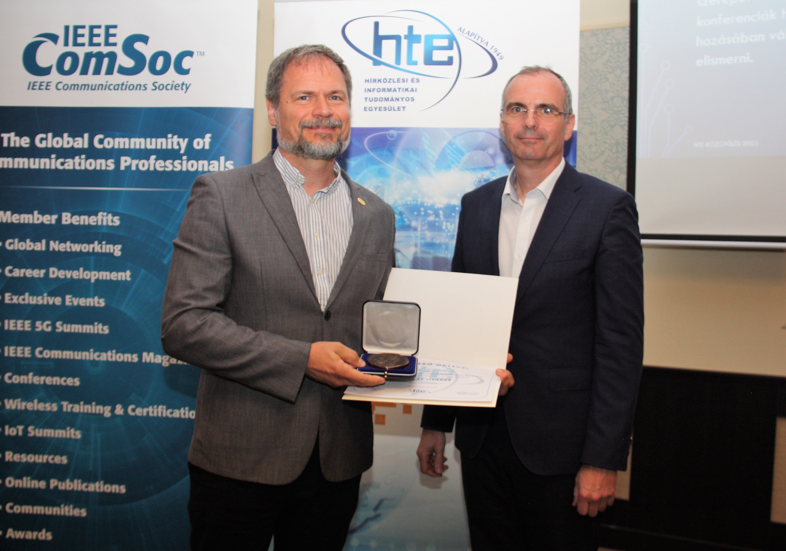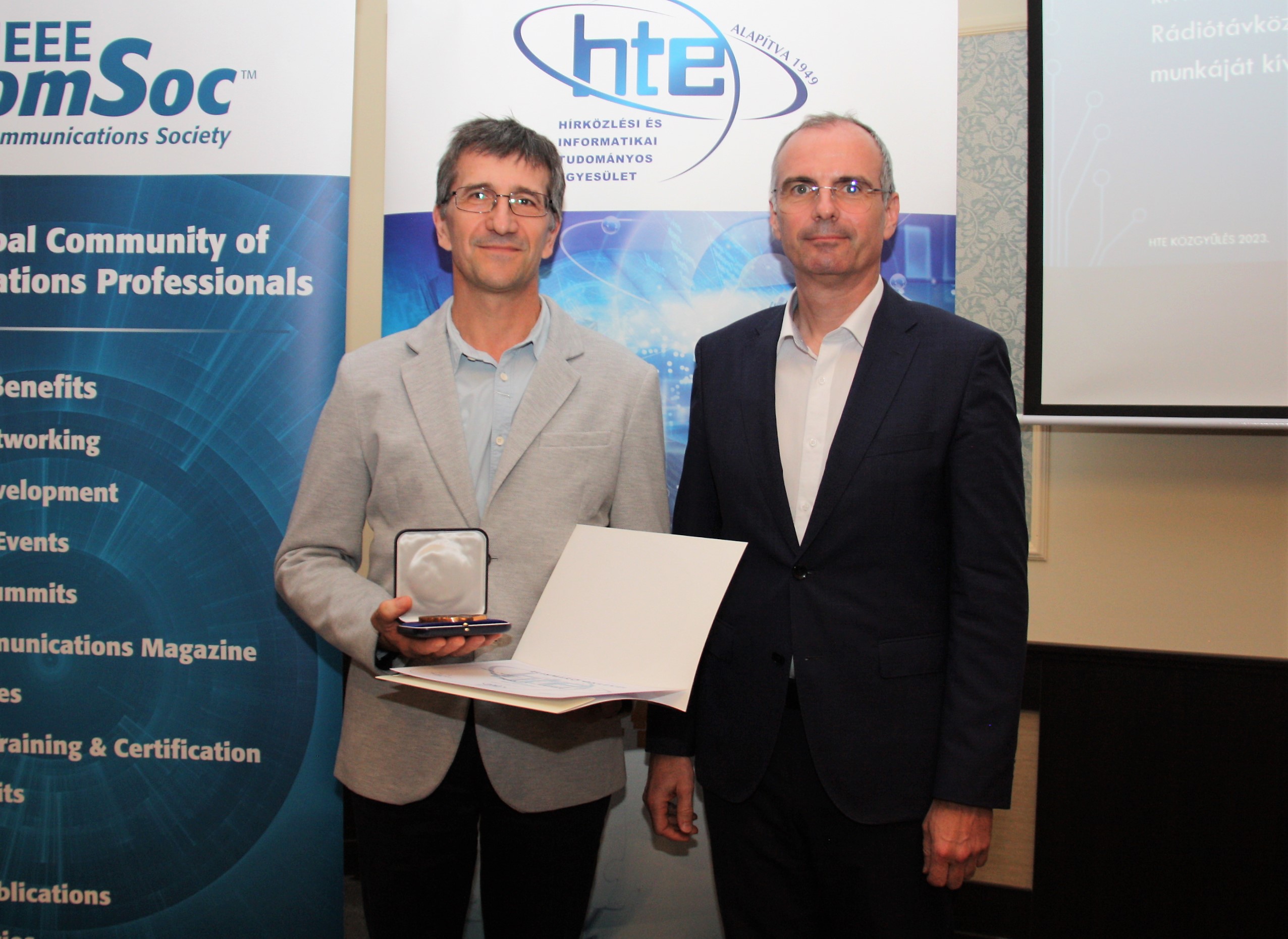 A HTE-be 2020-ban lépett be, de már előtte is tartott előadásokat a Rádiótávközlési szakosztály rendezvényein. 2022-től aktívan beszállt a HTE Infokom konferenciák szervezésébe, a programbizottság munkájába. Most már az egyik vezető szervezője a patinás rendezvénynek. Emellett felvállalta a HTE minikonferenciák szervezését is, széleskörű kapcsolataival segíti a magas szintű programok kialakítását és az előadók kiválasztását. A HTE a lendületes, önzetlen munkáját 2023-ban a HTE Ezüstjelvénnyel ismerte el.